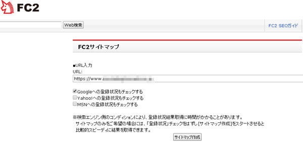 このサイトマップ作製はどこのサービスを使っても大差ありませんが、「FC2 サイトマップ」で検索すると出てくるFC2サイトマップサービスを使いました。