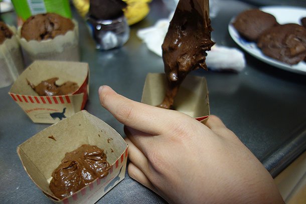 もしや火事なのでは?と思い、あわててキッチンに行ってみると、どうやらバレンタイン用のチョコチップカップケーキなるものを作っているらしいのですね。